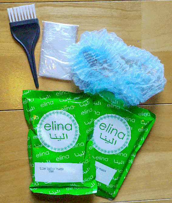 | インド製のヘナ専用ブラシです。 ヘアキャップと手袋が同封されています。 |